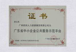 广东省中小企业公共服务示范平台证书