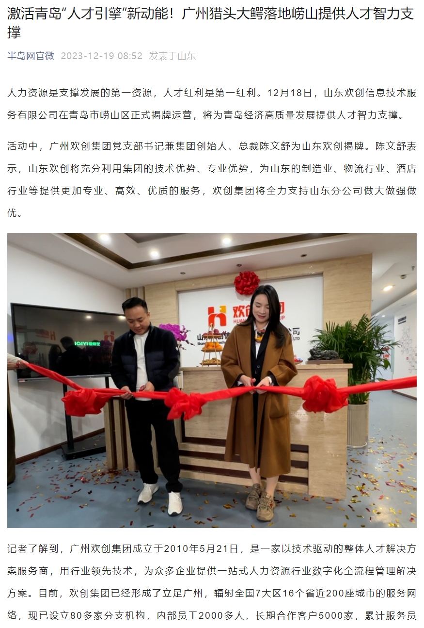 半岛网:激活青岛“人才引擎”新动能!山东平博pingbo(中国)信息技术服务有限公司正式揭牌运营
