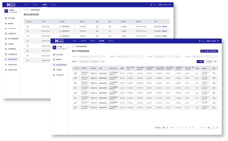 · 支持多次发放薪酬以及累计扣税,个税规则支持自助更新。